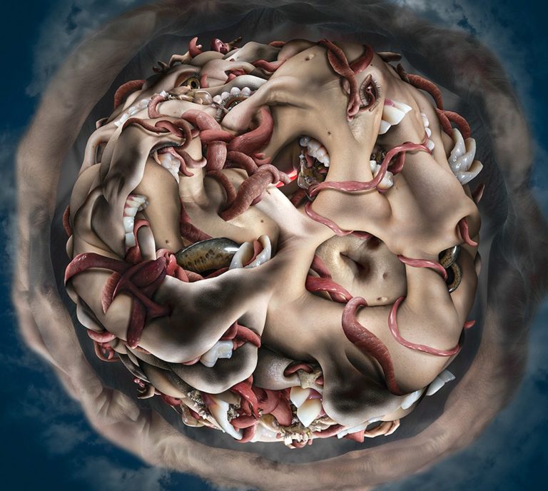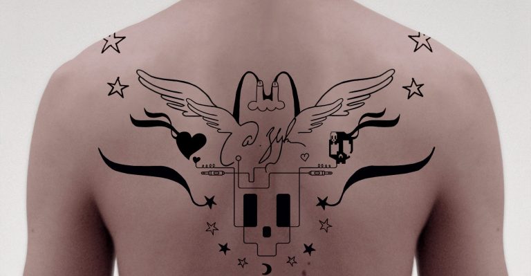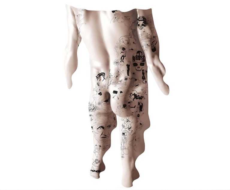 Vidéo en boucle (Simulation d’une peau tatouée à enfiler, réalisée à partir d’une digitalisation en 3D de l’artiste) – 2017.