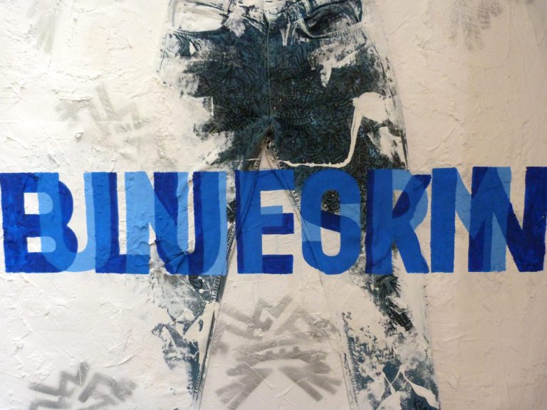 Jean’s, enduit, acrylique, spray et Posca sur toile,