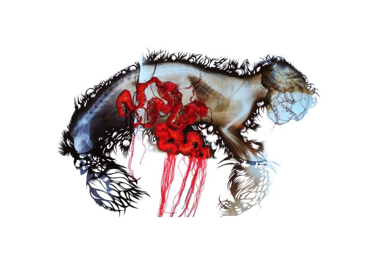 Radiographies, fil de coton, 70 x 90 cm, présenté dans un cadre monté