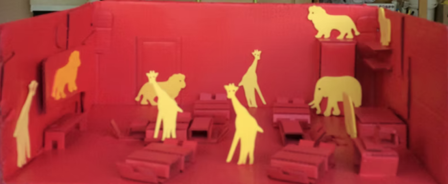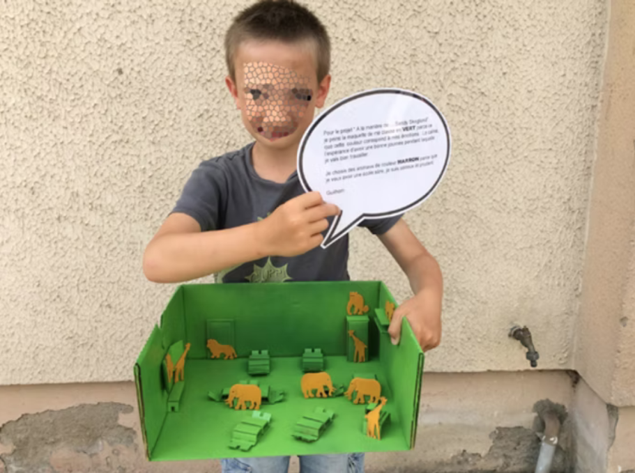 Elèves de CE2 - Ecole Joliot Curie - Bègles // " A la manière de ..." // Liu Bolin, l'art du camouflage, se dissimuler dans le décor de l'école. // Yayoi Kusama, création de décors & réalisation d'une performance filmée // Ferdinand Botero, célébrer la poésie du cirque et des corps de Botero en créant des personnages en bois pour ensuite poser avec ses formes imposantes. // Sandy Skoglund, la couleur des émotions, créer une maquette de la classe à la couleur de nos émotions.