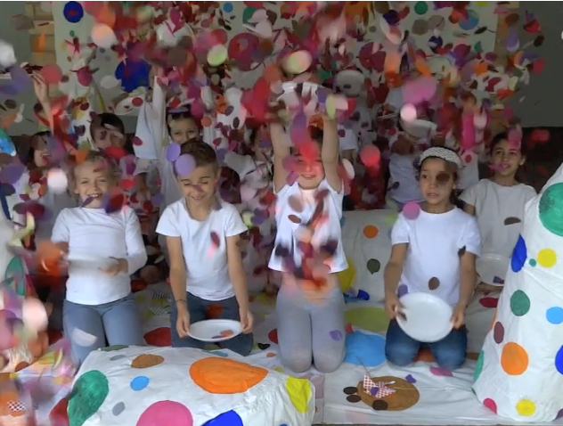 Elèves de CE2 - Ecole Joliot Curie - Bègles // " A la manière de ..." // Liu Bolin, l'art du camouflage, se dissimuler dans le décor de l'école. // Yayoi Kusama, création de décors & réalisation d'une performance filmée // Ferdinand Botero, célébrer la poésie du cirque et des corps de Botero en créant des personnages en bois pour ensuite poser avec ses formes imposantes. // Sandy Skoglund, la couleur des émotions, créer une maquette de la classe à la couleur de nos émotions.